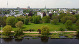 Green spaces and parks in the city of Hamburg on the Alster River - aerial photography