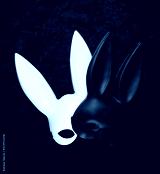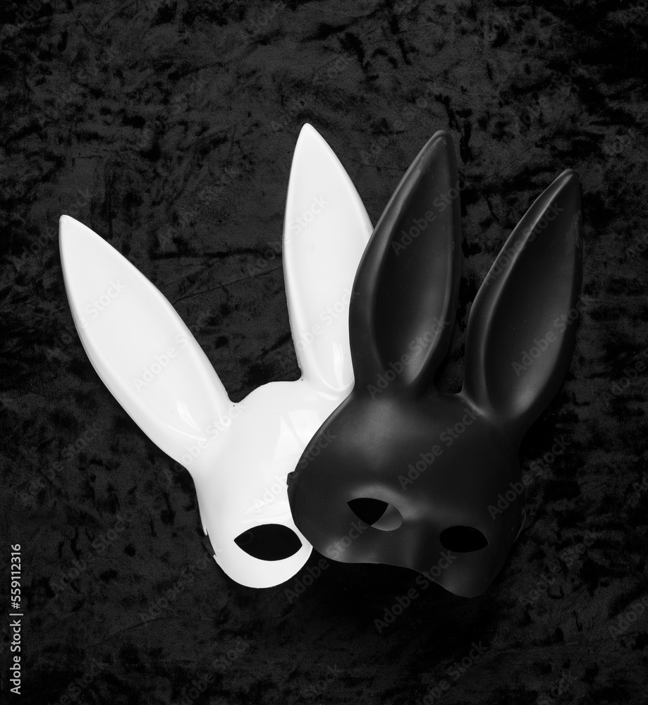white rabbit mask on black velvet