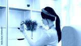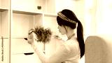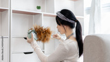 Housewife holding a dusting brush to clean things Pillows, rugs and other things..in the living room, Big cleaning, Daily routine ,Removes germs and dirt and deep stains, Spray alcohol