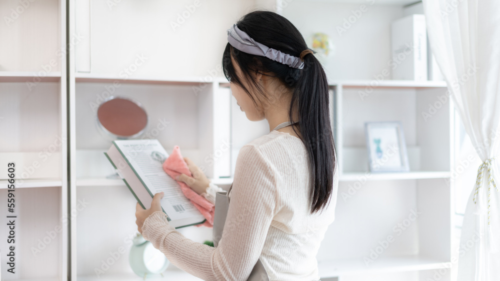 Housewives use towels to wipe things, tables, chairs, display cabinets and glass inside the house,, Big cleaning, Housework, Daily routine ,Removes germs and dirt and deep stains, Spray alcohol.