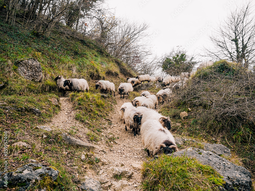 Domestic sheep on meadow in countryside