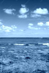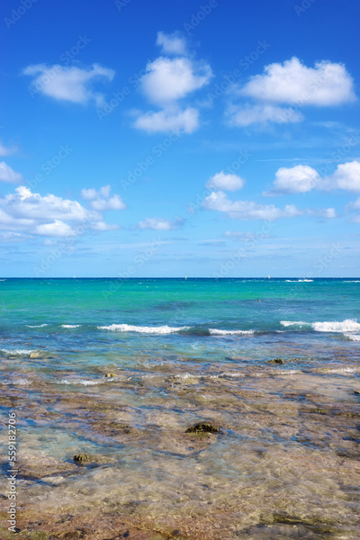 Caribbean Sea seascape with rocks in shallow water on a sunny day.