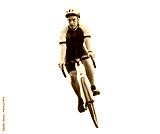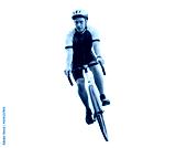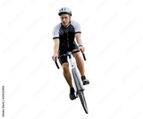A male cyclist rides a bicycle in a helmet, transparent background.