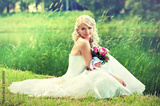 Beautiful blonde bride with a bouquet of flowers