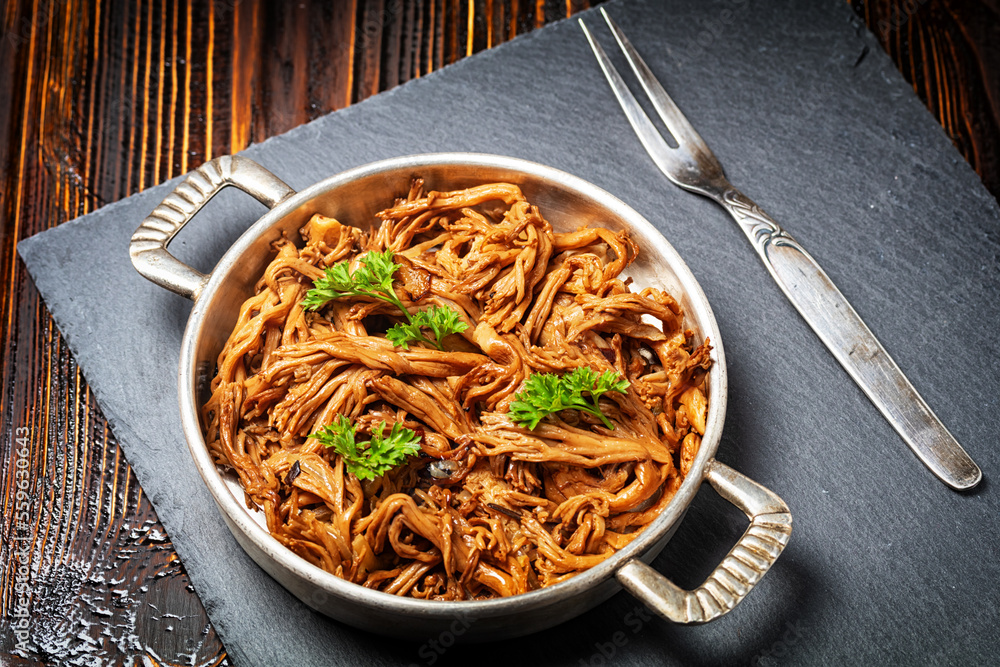 Fried Ramaria Flava, yellow coral mushrooms on silver pan. Wild mushroom, Ukraine.