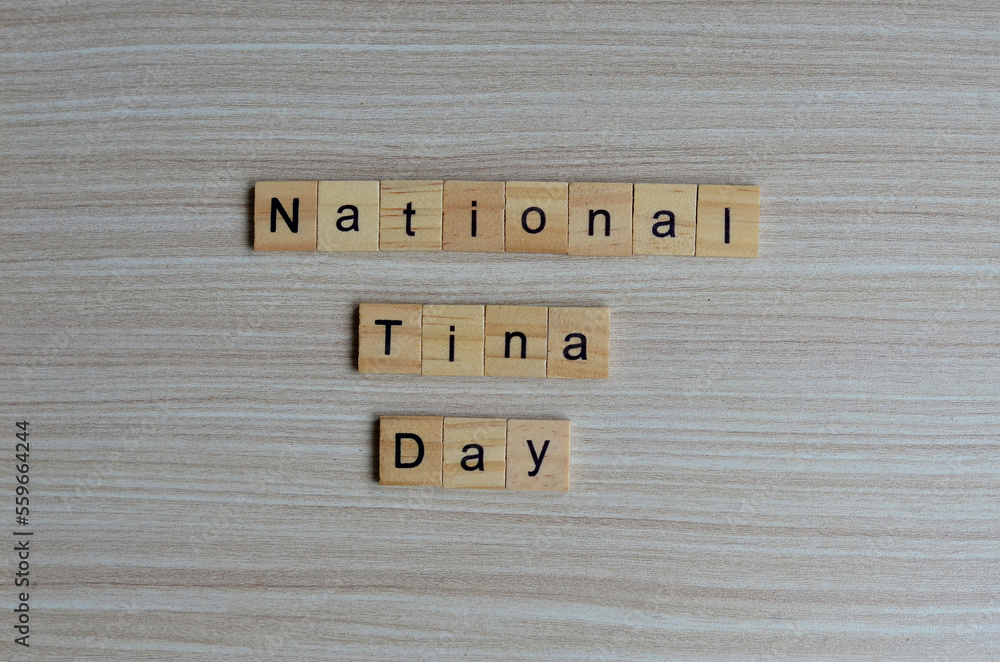 National Tina day text on wooden square, holiday concept quotes