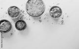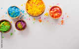 Happy Holi decoration, the indian festival.Top view of colorful holi powder on white background.