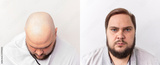 before and after bald head of a man. the process of hair transplantation on the head. treatment of baldness.