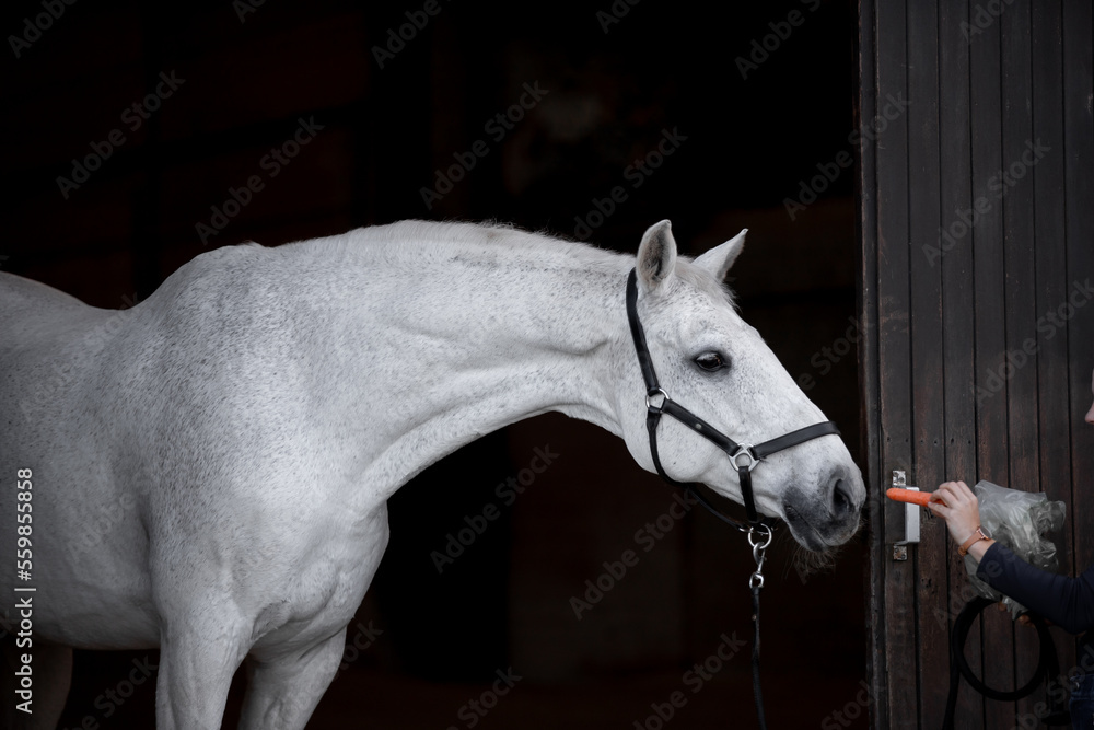 Beautiful gray horse on a black background