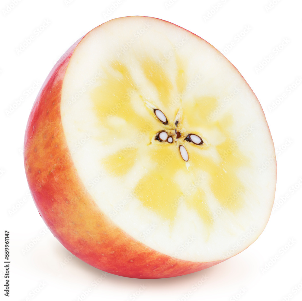 Honey core apple isolated on white background, Sweet honey core apple fruit on white With work path.