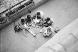 University, group collaboration and students working on research, college project or education study. Knowledge learning, teamwork meeting and top view of diversity people coworking on school floor
