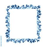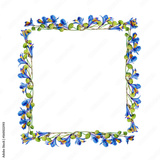 Square frame make with blue flowers and leaves, isolated on transparent background