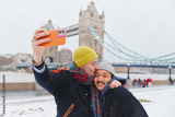 Young Happy Asian And Caucasian Same Sex Interracial Tourists Couple KissingTaking A Selfie On Vacation City Break