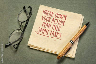 break down your action plan into small tasks - advice on a napkin, business, productivity and personal development concept
