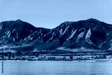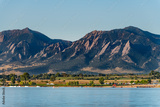 A triathlon at Boulder Reservoir with the Flatirons in the background