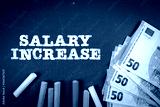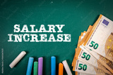 Salary Increase. Euro money and text on a green chalkboard
