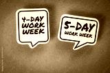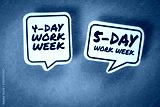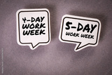 4-day and 5-day work week concept. Speech bubbles with text on a gray background