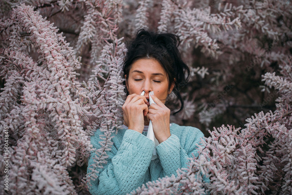 Woman allergy. Spring woman. Happy day. Photo. Winter.