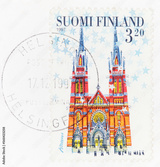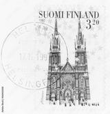 stamp vintage briefmarke old alt retro papier paper used gebraucht gestempelt frankiert cancel suomi kirche winter finland helsinki bunt church cathedral winter christmas weihnachten eingang