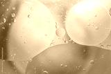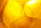 Gold Oil bubbles close up. circles of orange water macro. abstract shiny yellow background