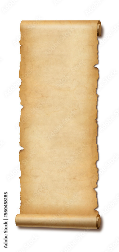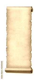 Old paper vertical banner. Parchment scroll isolated on white with shadow