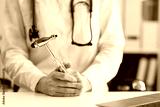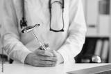Doctor neurologist with hammer in hands in clinic