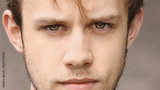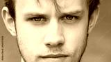 concentrated handsome young man with brown eyes, beard and healthy skin looking to camera. High quality photo
