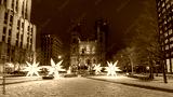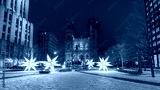 Montreal, winter decorations of the Place d'Armes in front of Notre-Dame Cathedral,