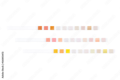 Three colored test strips for semiquantitative analysis isolated png with transparency