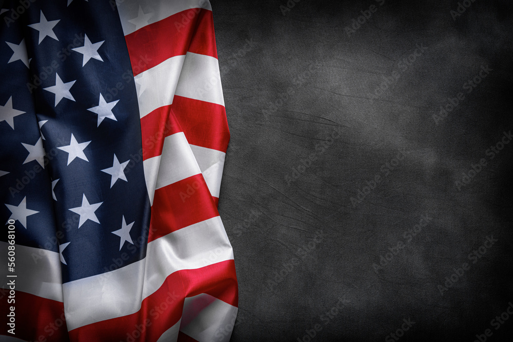USA American flag on worn darck background. Image suitable for Patriotic concept, USA Memorial day, Labor day, 4th of July or Veteran's day celebration.