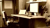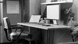 side view of a modern contemporary home office workspace with PC computer and laptop
