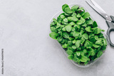 Microgreens. Superfood microgreen sprouts in plastic container close-up.