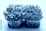Microgreens. Superfood microgreen sprouts in plastic containers.