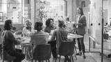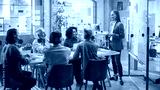 Focused Group of Multiethnic People in a Meeting in Office. Young White Female CEO using Whiteboard to Pitch a Startup Idea to Potential Investors and Answer Questions. Brainstorming Concept