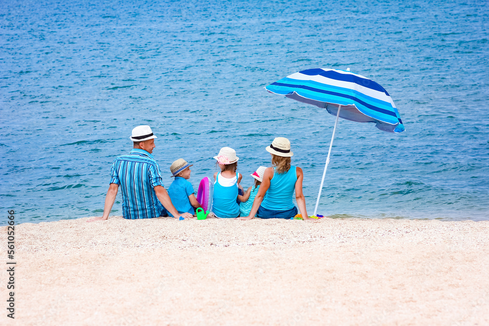 A Feet on the sand of happy people by the sea on nature travel