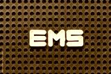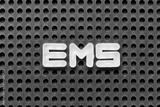 White alphabet letter in word EMS (abbreviation of emergency medical services or express mail service) on black pegboard background
