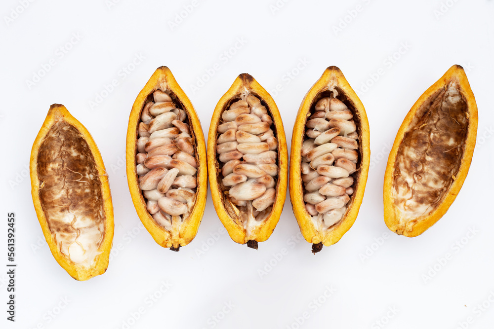 Cocoa fruit isolated on white background