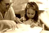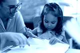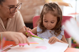 Teacher and toddler smiling confident cutting paper at kindergarten