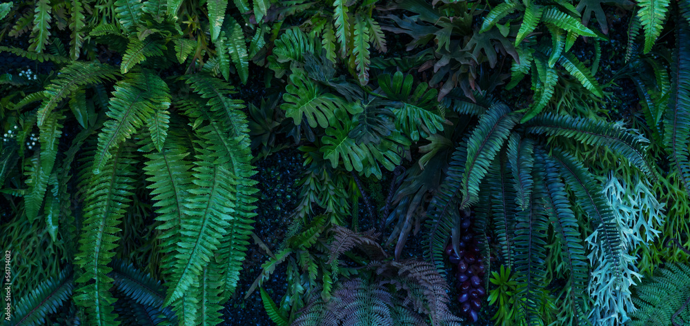 Full Frame of Green Leaves Pattern Background, Nature Lush Foliage Leaf Texture, tropical leaf