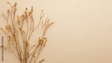 top view composition of romantic dried flowers on a pastel beige background