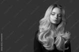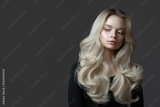 Beautiful young woman. Gorgeous blonde hair. Gray background.