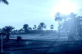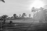 Sunset view of palms and lush fields in the valley of Nile river, Egypt