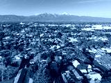 Aerial view of Ontario city in California with mountains in the background, California, USA