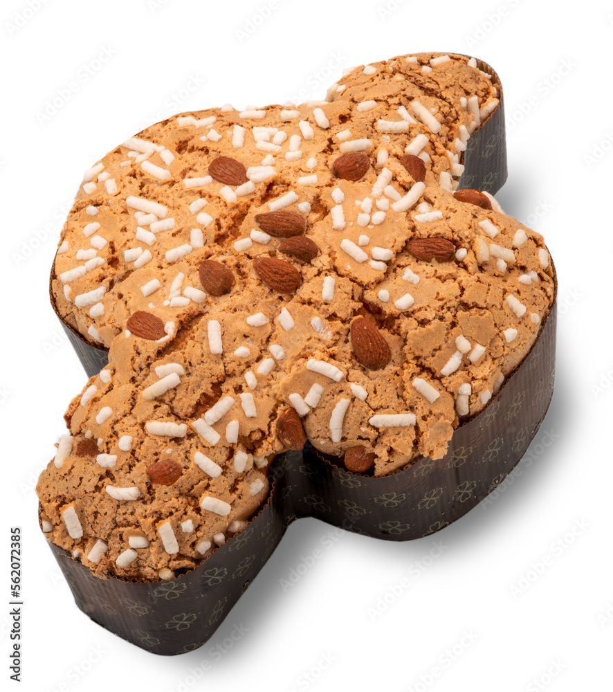 Colomba Pasquale, Easter Dove in english, typical italian easter cake with sugar glaze and with almonds