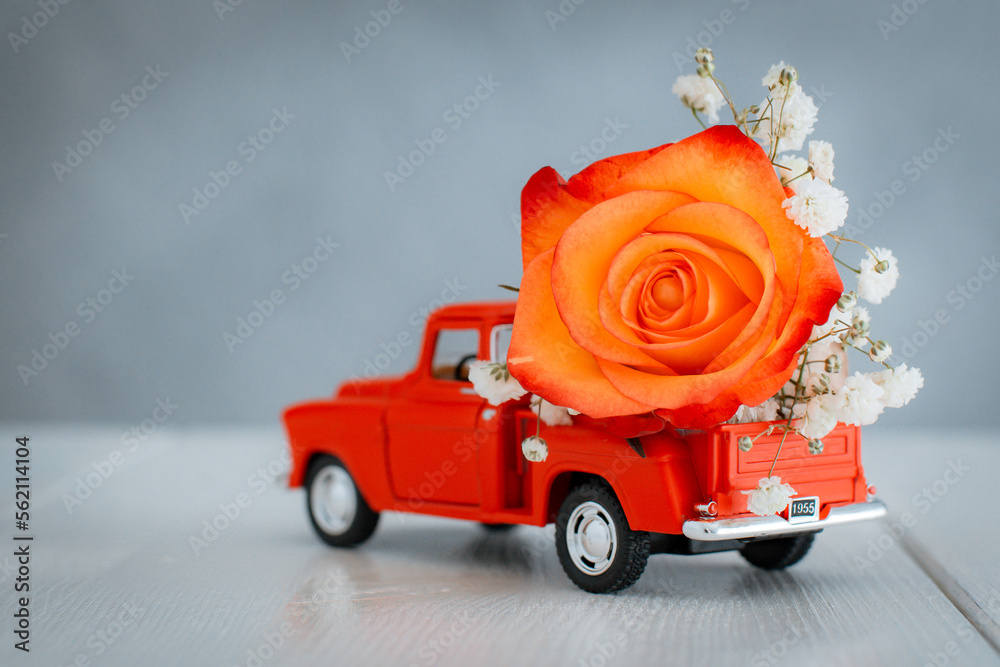 February 14 card, Valentine's day. Flower delivery. 8 March, International Happy Women's Day.