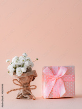 mini bouquet gypsophila craft wrapper paper gift bag. concept congratulations holiday women day March 8, birthday