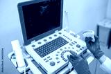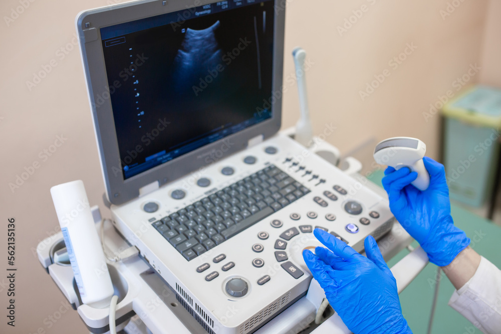 Ultrasound doctor in the clinic office conducts a study of the genitourinary system