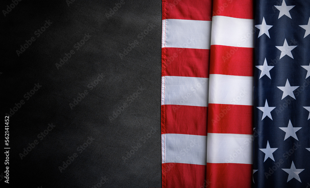 USA flag on a dark background. American flag element on a black background. Patriotic concept.