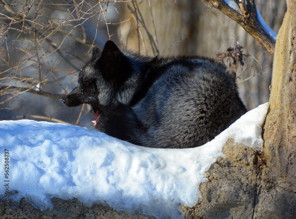 The silver fox is a melanistic form of the red fox (Vulpes vulpes). Silver foxes display a great deal of pelt variation. Some are completely glossy black except for a white colouration on the tale