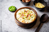 Fresh hot chowder soup with fried bacon slices and shredded cheese in a bowl